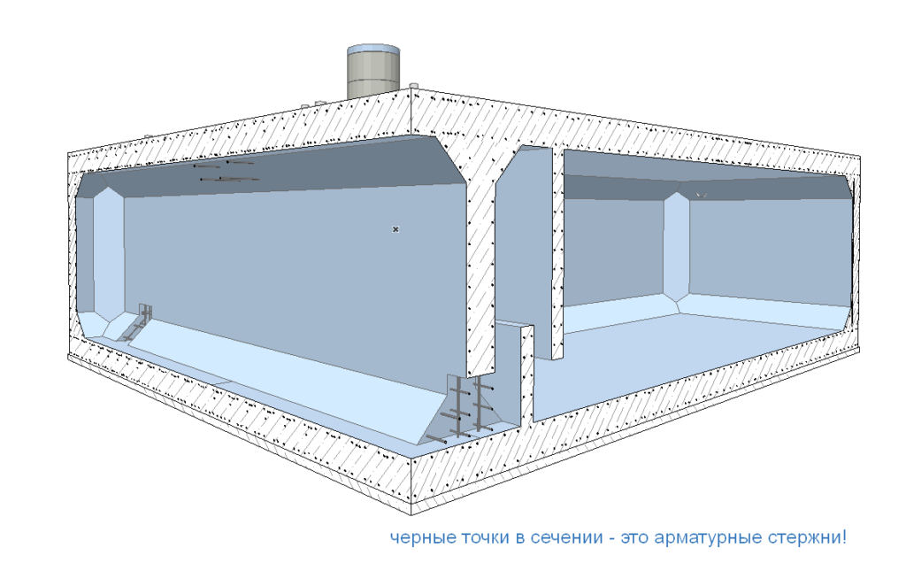 Рис. 17. Трехмерный разрез модели резервуара с армированием всех конструкций