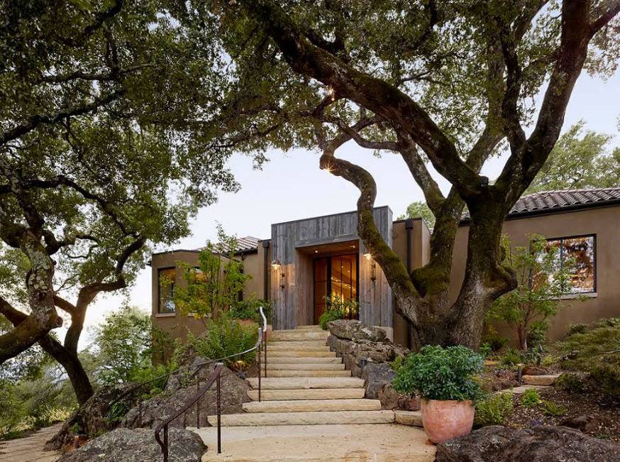 Выбор материалов задает и цветовую гамму. В облике строений и предметов преобладает песочный, серый, белый, серебристый, цвет кофе с молоком, иногда темно-коричневый (если в отделке используются темные цвета древесины). Сад — это сочетание всех оттенков зеленого с белым, синим, лиловым, фиолетовым. Акцентом может стать насыщенный цвет: малиновый, терракотовый, желтый, черный.