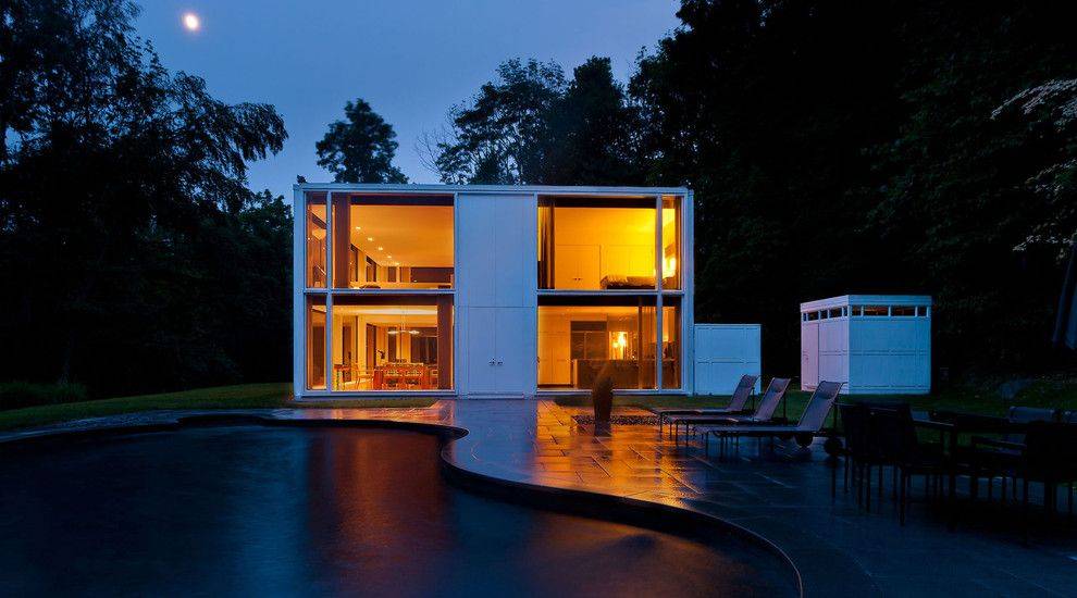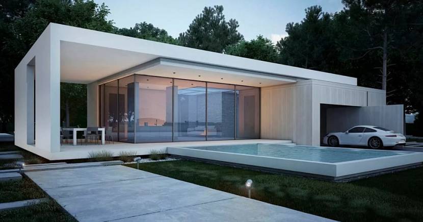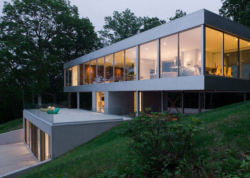 Загородный дом в стиле хай-тек со стеклянными стенами