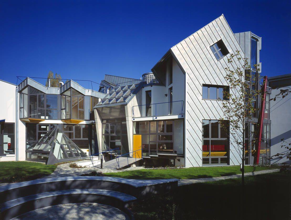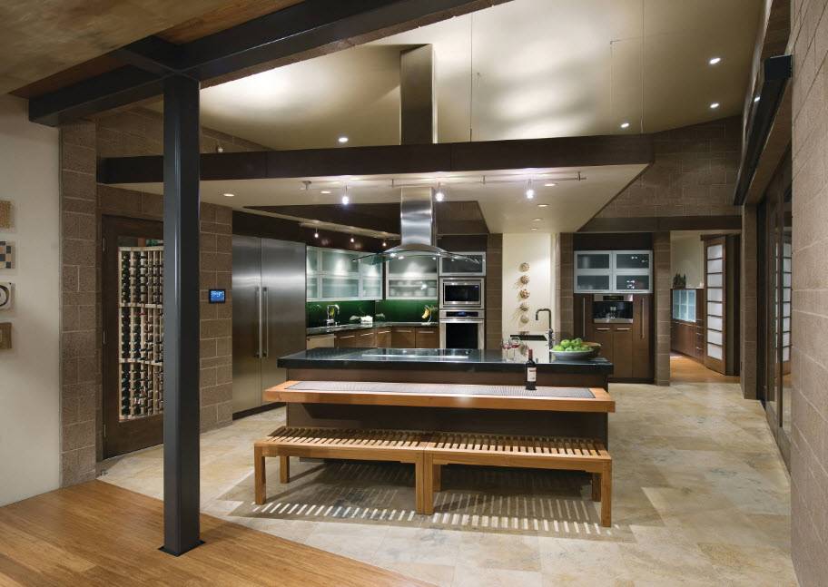- крыши – в подавляющем большинстве – плоские, с учетом упора на максимальную функциональность – эксплуатируемая кровля, что позволяет превратить крышу в большую зону отдыха, места для проведения вечеринок, принятия солнечных ванн или спортивную площадку на открытом воздухе. Другой вариант – частично или полностью остекленная крыша, пропускающая максимум дневного света. Преимущество такого решения – не только экономия электроэнергии, естественный свет повышает работоспособность и стимулирует активность