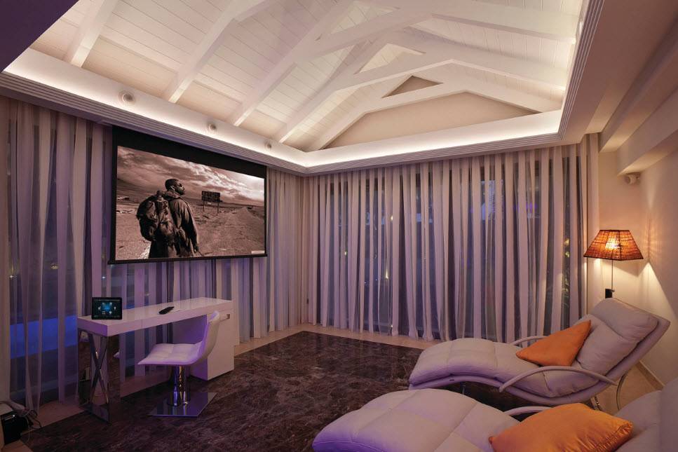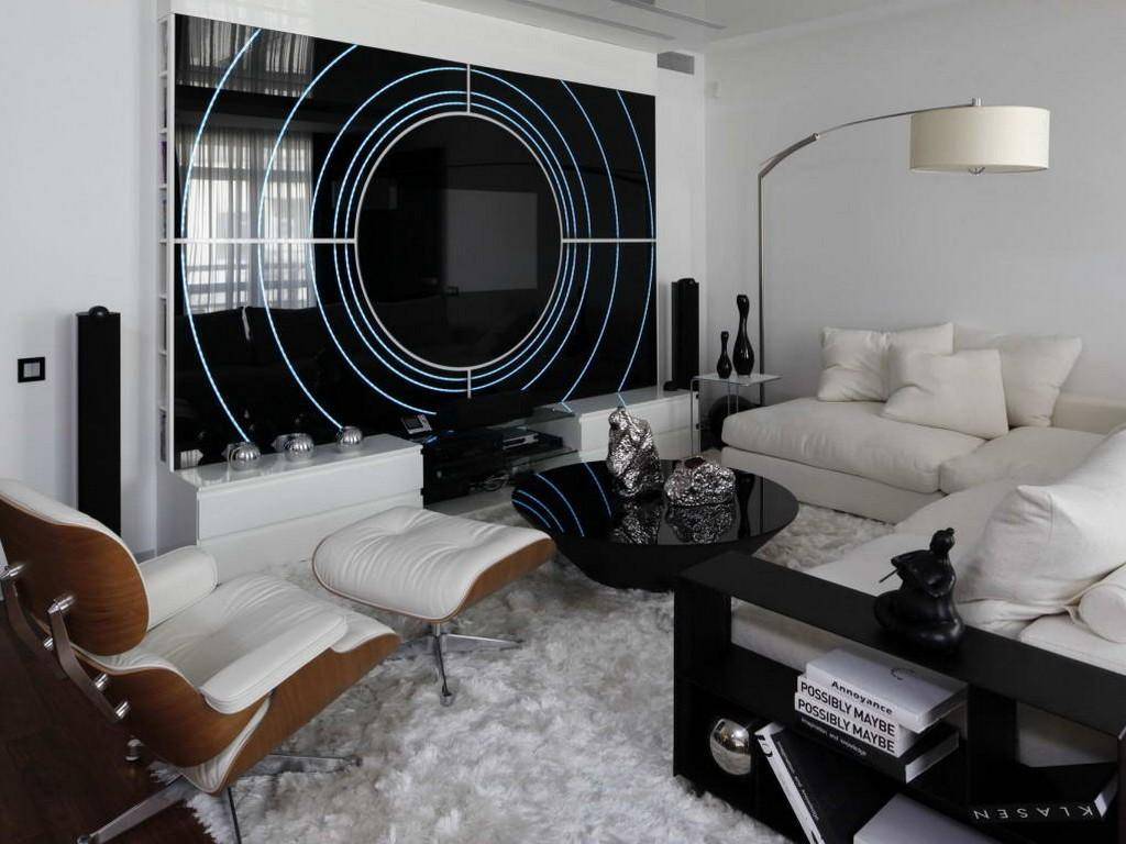 Если бюджет позволяет, то даже мебель можно оснастить умными технологиями, связав ее с информационной системой загородного дома. Если используется бионаправление, то здесь можно использовать натуральные материалы, при этом линии могут быть сглаженными и более плавными. Для создания уютной атмосферы используется ковер – однотонный без узоров и рисунков с длинным ворсом.