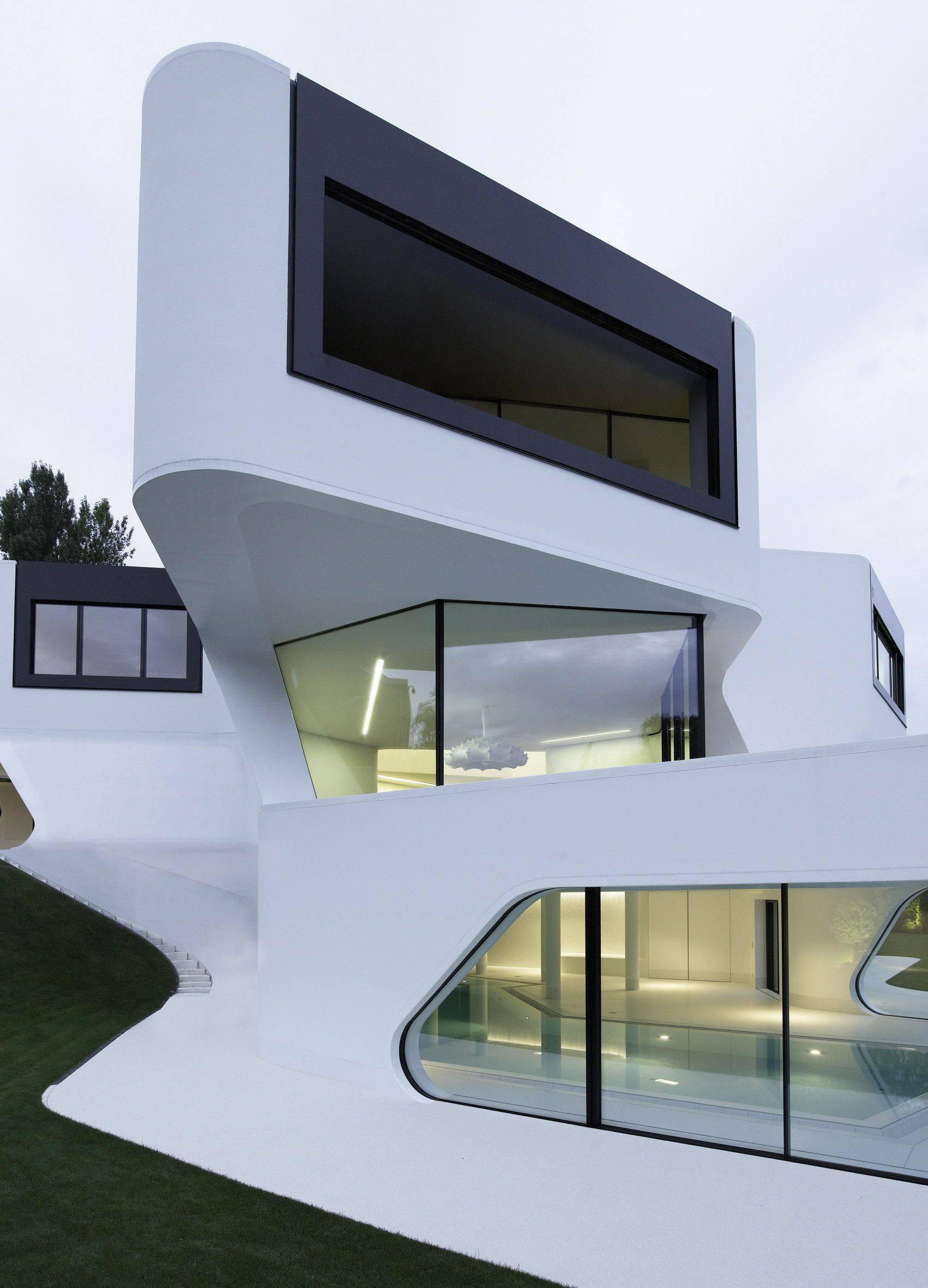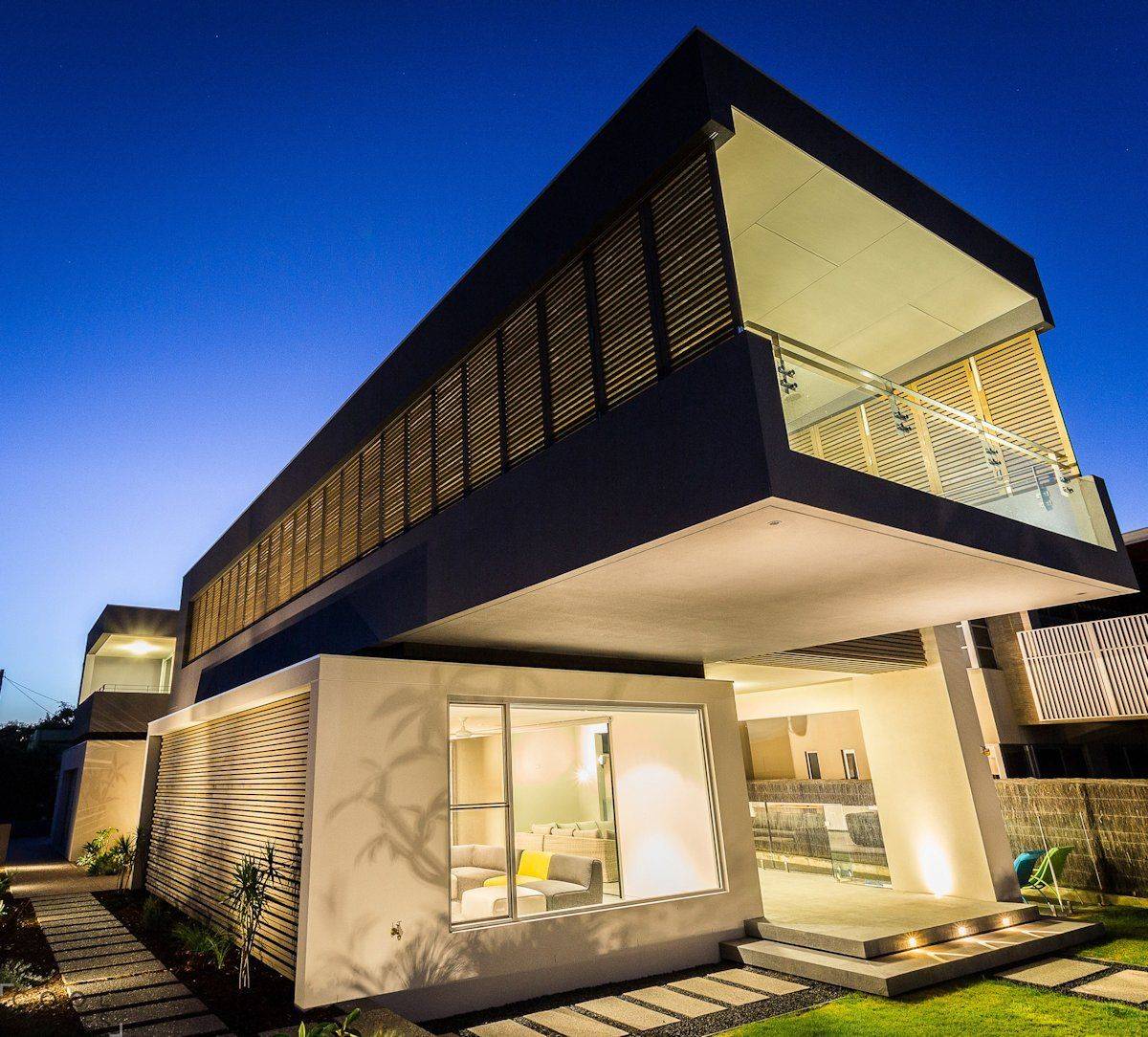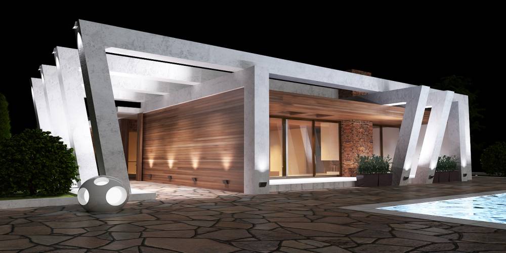 Стильный дом в стиле хай-тек с подсветкой всего фасада