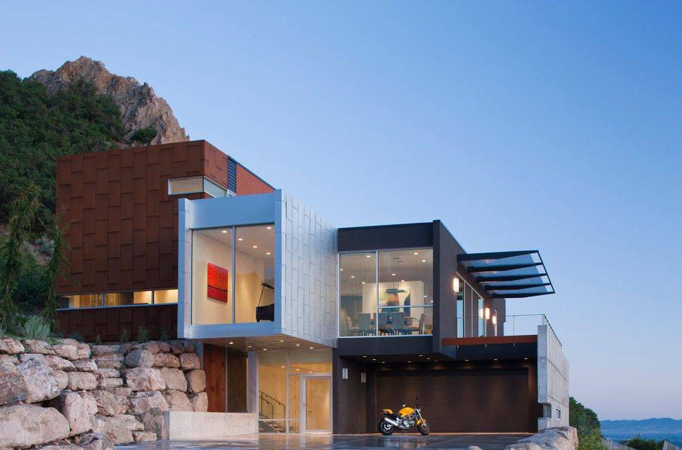 Цвет металлики в экстерьере прекрасного загородного дома стиля хай-тек