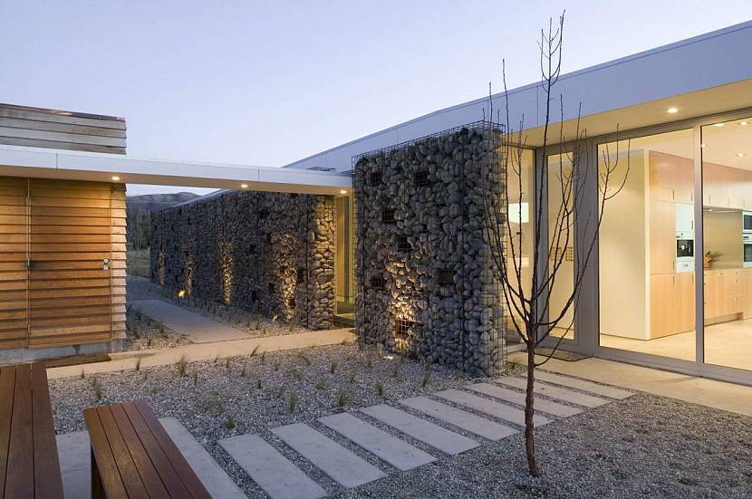 Что касается цвета, то идеальный вариант – это сочетание черного, белого, серого или мраморного оттенков. Яркие детали и рисунки здесь будут неуместными, так как характерны для других стилей. Несмотря на такую категоричность, вокруг дома приветствуются газоны. Но все же они должны меть геометрическую форму. Зачастую на территории не делают ландшафтный дизайн и не высаживают цветы.