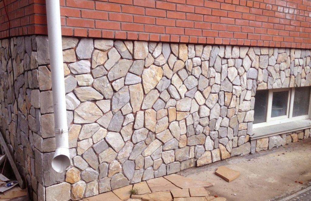 Начинается укладка с угла первого ряда, по кругу. После того, как один ряд закончен, можно переходить к следующему. Если для отделки дома снаружи приходится резать плиту, лучше приложить на предназначенное место, и отметить размер, иначе можно сильно ошибиться в замерах. Чтобы в итоге получить максимально реалистичный вид, используют цементный раствор для затирки швов.