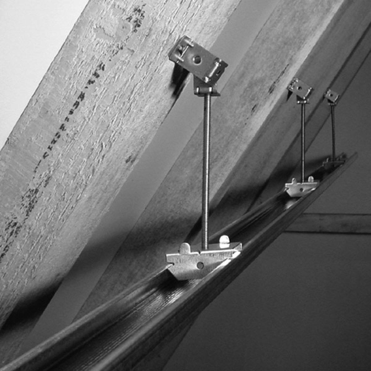 - Фиксируют направляющий брус на поверхности потолка, используя подкладки, чтобы уменьшить перепады высоты основания.