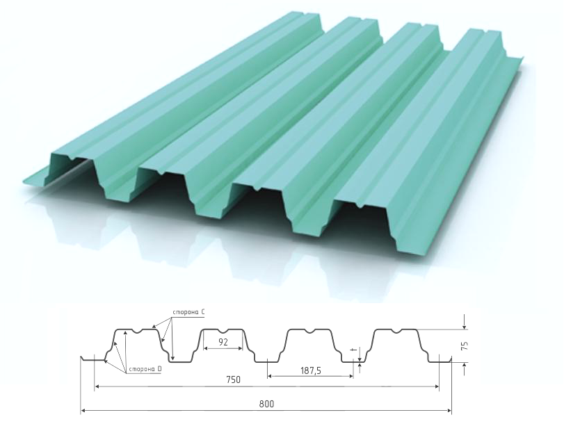 Чем больше эти величины, тем, соответственно, и прочнее будет лист. Прочностные характеристики определяют также количество ребер жесткости. Любой тип профильного листа маркируют буквами и цифрами. Буквы указывают на область назначения, а цифры высоту профиля.