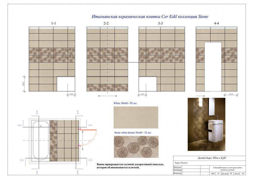 Точное проектирование плитки в ванной можно также проводить самостоятельно. Работа это довольно несложная и не требует огромного количества времени.