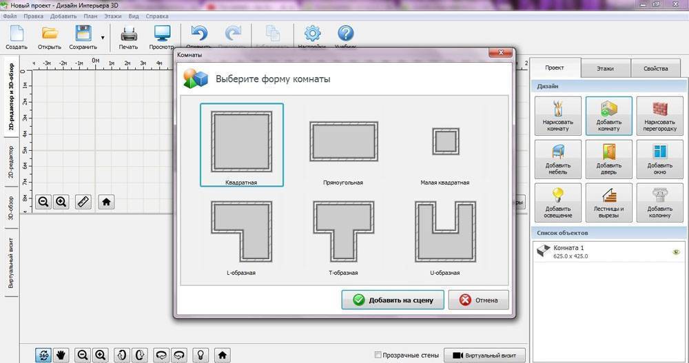 Шаг 3: особенности создания в программе 3D-дизайна интерьера квартиры