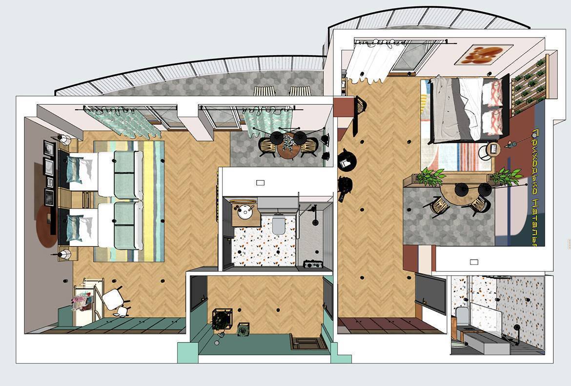 Недостатки: скудная цветовая гамма. Проект демонстрируется в 2D формате, то есть плоским, как обычный рисунок.