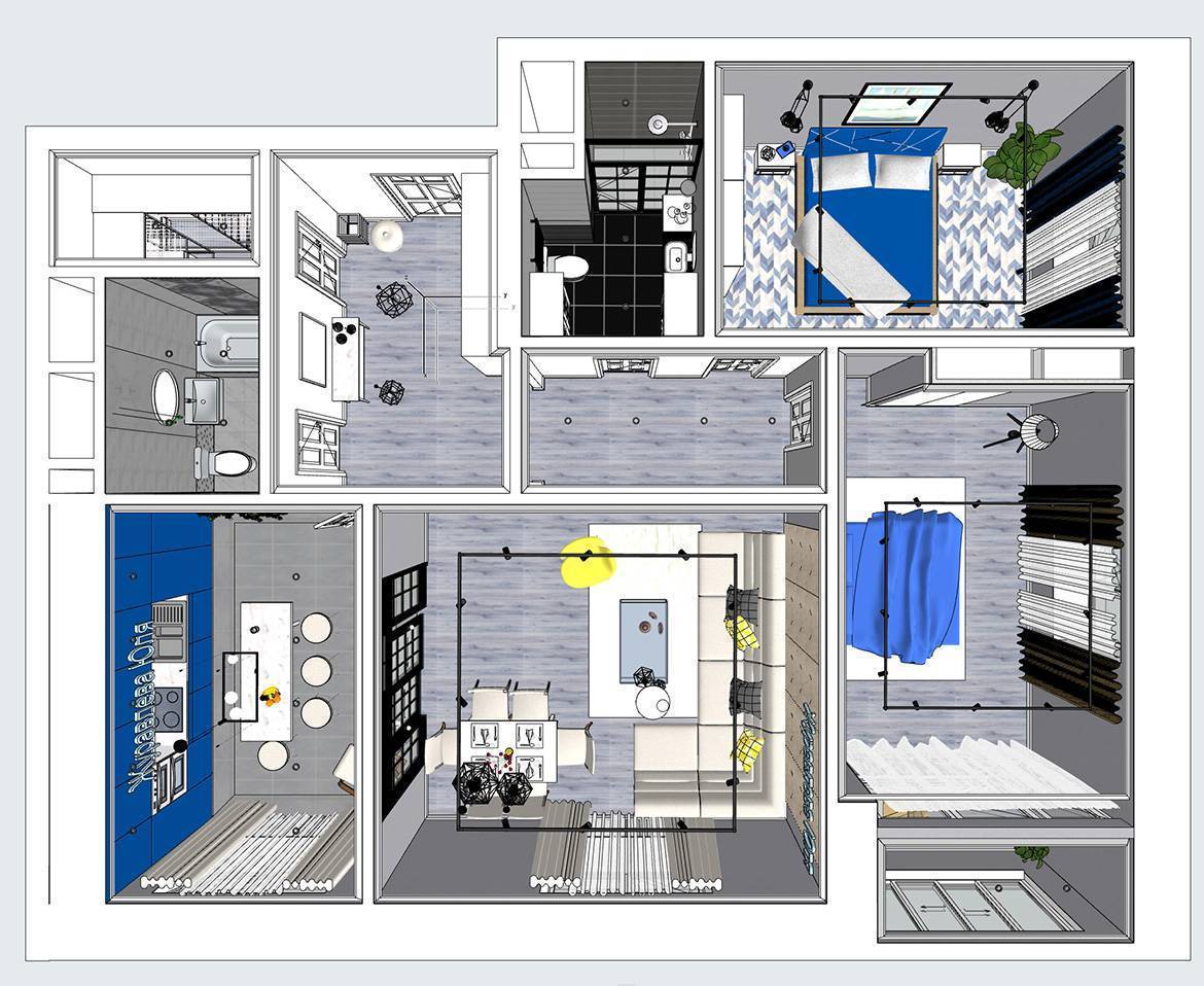 3) SketchUp – быстрое и эффектное представление дизайн-проекта квартиры в объеме с расстановкой мебели и элементами декора без долгой визуализации. Есть смысл освоить!