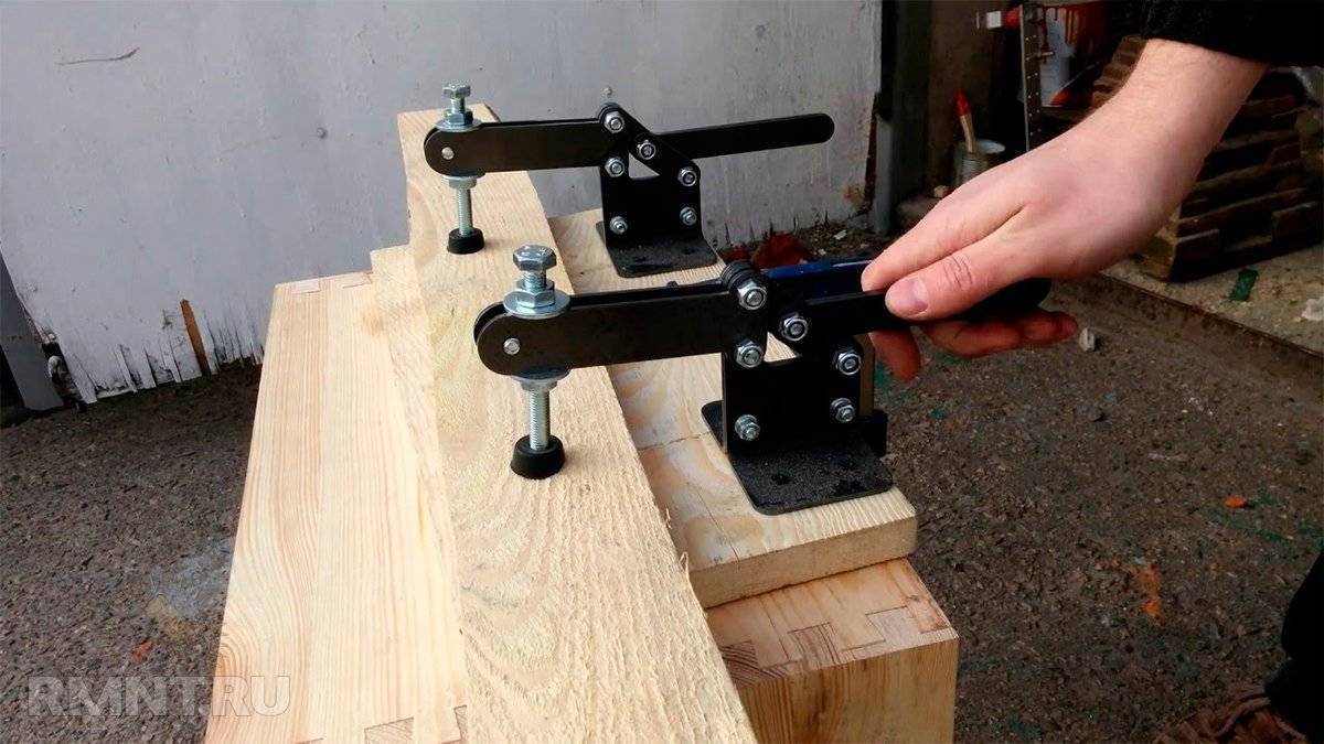 Обрабатываемая древесина не должна вилять. Результат работы будет испорчен, можно нанести себе травму. Заготовку нужно уложить на надёжное основание и закрепить, например, струбцинами. При использовании шаблона, его тоже закрепляют.