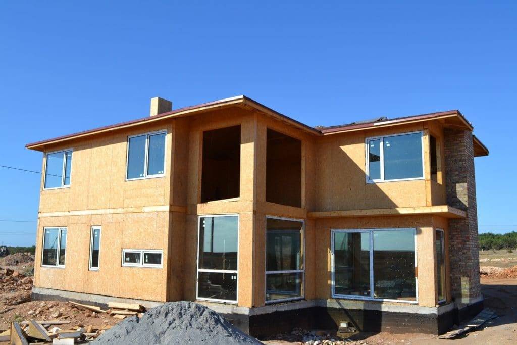 Далее переходят к внешней двухслойной обшивке. Сначала обшивают каркас стен изоляционными материалами, а только потом – ОСП. Необходимо обшить каркас полностью снаружи гидроизоляцией и плитами. На это уйдет около 500-600 долларов.