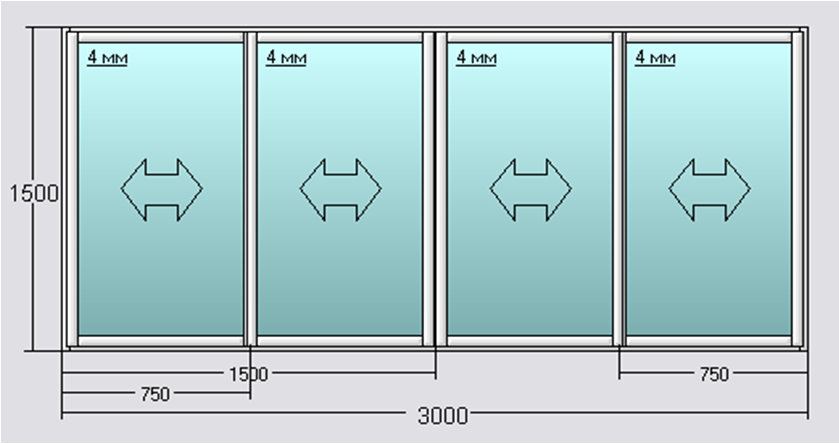 Общая схема остекления предельно проста: общий фронт разбивается на отдельные проёмы с помощью профильных труб или обработанных антисептиком брусьев, которые устанавливаются вертикально, разделяя весь фронт на секции. Как правило высота проёмов не превышает 2,5 м, что вписывается в нормативы всех рассмотренных видов остекления, однако ширину (шаг стоек) нужно выбирать под конкретный материал рам. Для деревянных рам рекомендованный шаг стоек — 100–120 см. Алюминиевые и ПВХ рамы могут устанавливаться без промежуточных опор, однако ширину секции в обоих случая не следует выбирать выше 160 см.