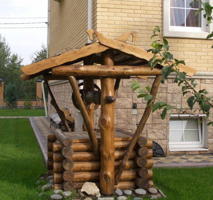 Важно, чтобы колодец не казался лишним на территории, а гармонично вписывался в общий интерьер дачи. Мастера и дизайнеры рекомендуют использовать обрезки бревен или бруса, доски, вагонки, оцилиндрованное бревно. Вполне подойдут остатки строительных материалов, которые не понадобились при возведении коттеджа или хозяйственных построек