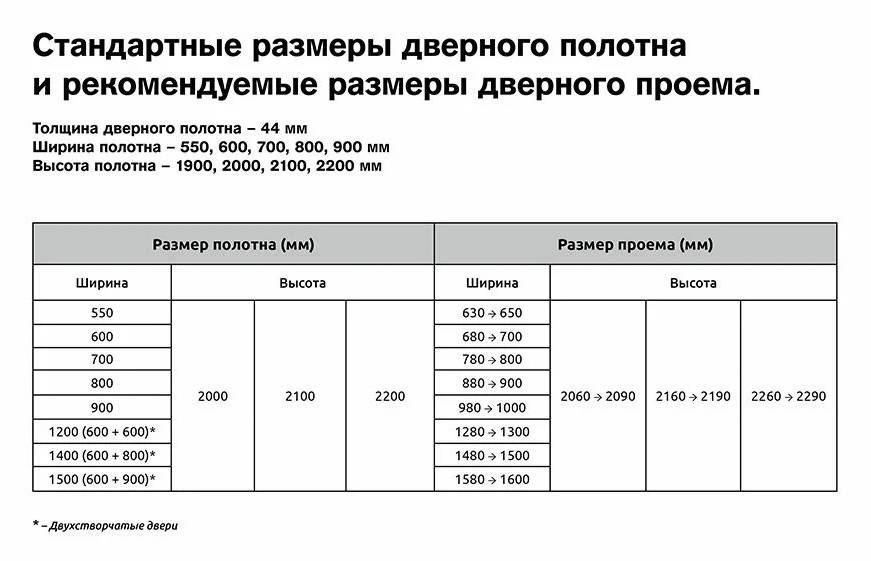 Таблица типовых размеров дверных проемов