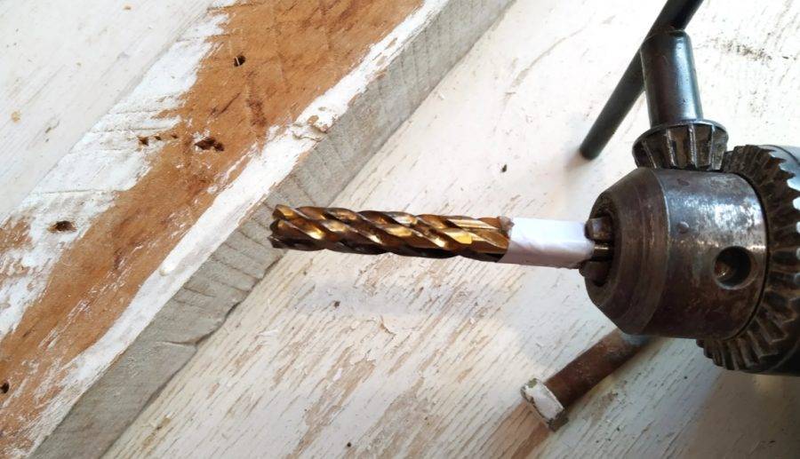 Для этого нужно воспользоваться тремя тонкими сверлами и скрепить их между собой при помощи обычной изоленты. Стоит отметить, что их диаметр не должен сильно отличаться друг от друга. Чтобы получить максимально ровное отверстие, сверла, во время скручивания между собой необходимо выровнять. В том случае, если хотя бы одно сверло из общей связки будет немного выступать вперед, оно станет так называемой осью вращения всей конструкции. В результате этого диаметр проделываемого отверстия будет немного больше от изначально запланированного размера.