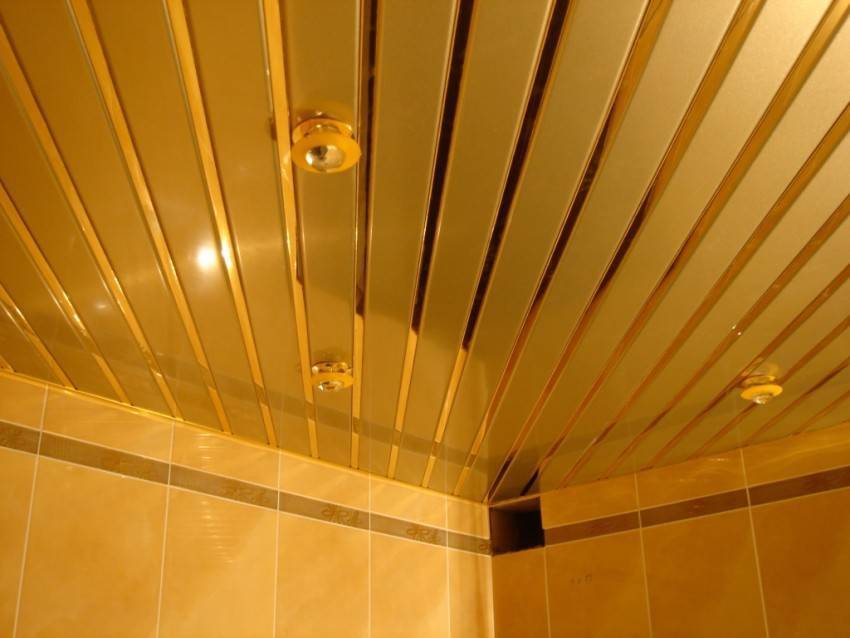 Реечные алюминиевые потолки для ванной превосходно скрывают все провода, подведённые к светильникам