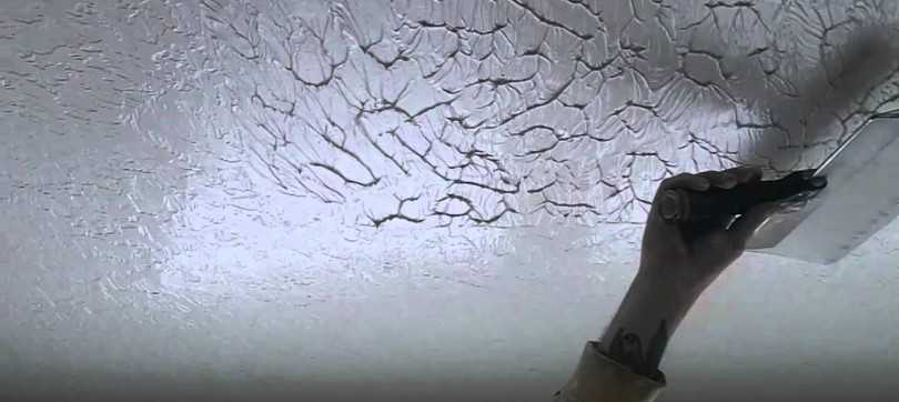 Полиэтиленовая пленка. Также предусмотрено несколько вариантов: пленку комкают или же аккуратно прикладывают к мокрому слою, после чего снимают. Чтобы стена не имела слишком выразительных и острых элементов, их сравнивают большим шпателем.