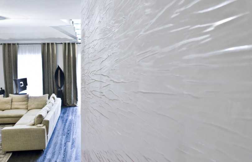 Рельефная штукатурка стен своими руками весьма интересна с эстетической точки зрения, ведь создать два совершенно одинаковых рельефа невозможно. При помощи такой смеси можно сымитировать внешний вид многих материалов: натурального гранита, апельсиновой кожуры или срез дерева, изъеденный насекомыми и тому подобное.