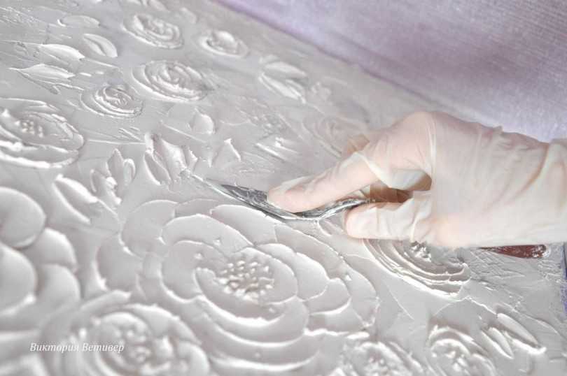 Самая интересная часть – это создание задуманного рельефа на стене. Как уже говорилось выше, здесь потребуется проявить свою фантазию и использовать самые разные предметы, которые есть у вас дома