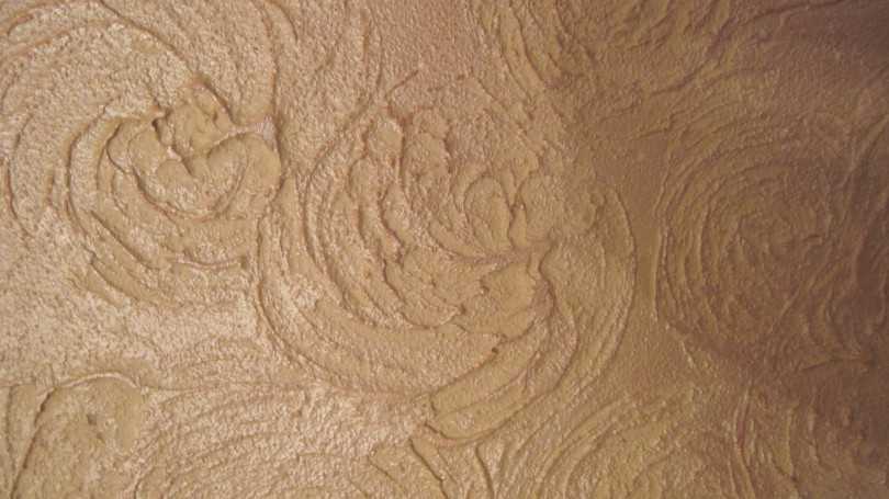 Для работы замешивают рельефную штукатурку. Все работы выполняются строго по инструкции, нанесённой на упаковке.