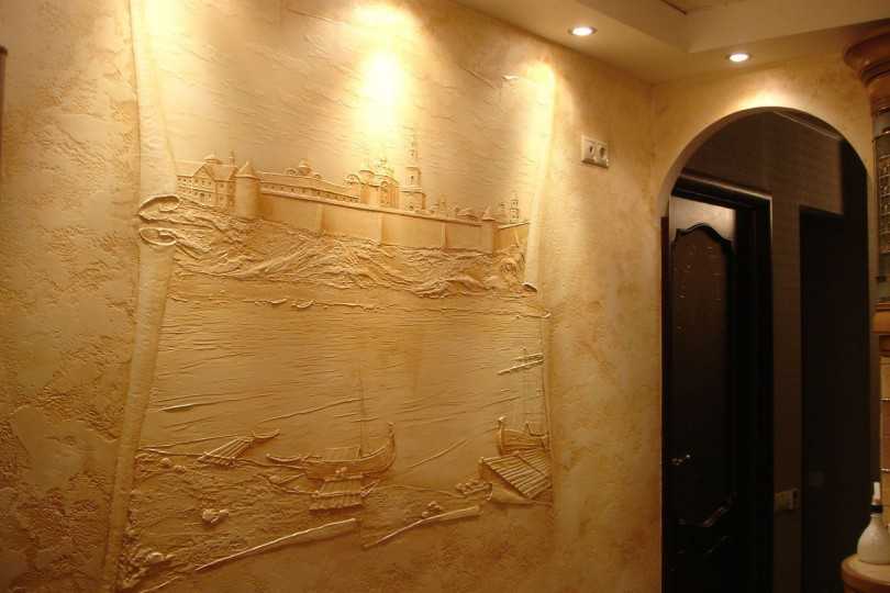 Рельефные картины из штукатурки, сделанные своими руками, отличаются по фактуре и узору. Существует несколько вариантов покрытия, вот самые популярные из них: