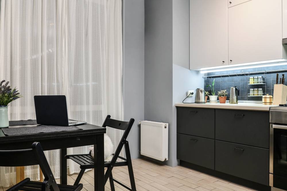 В ремонте маленькой кухни вы должны отказаться от антрацита и черного цвета. Хотя темные цвета являются одним из хитов сезона, они сильно уменьшают интерьер.