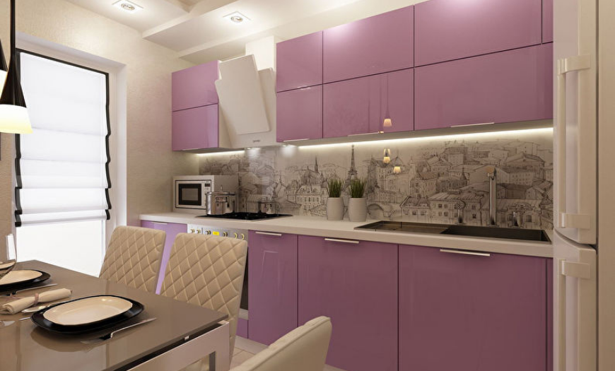 Для совсем маленькой кухни дизайнеры советуют применять классические серые, бежевые, оранжевые и белые тона. Очень часто дизайн дополняют оригинальной графикой и элементами более ярких оттенков.