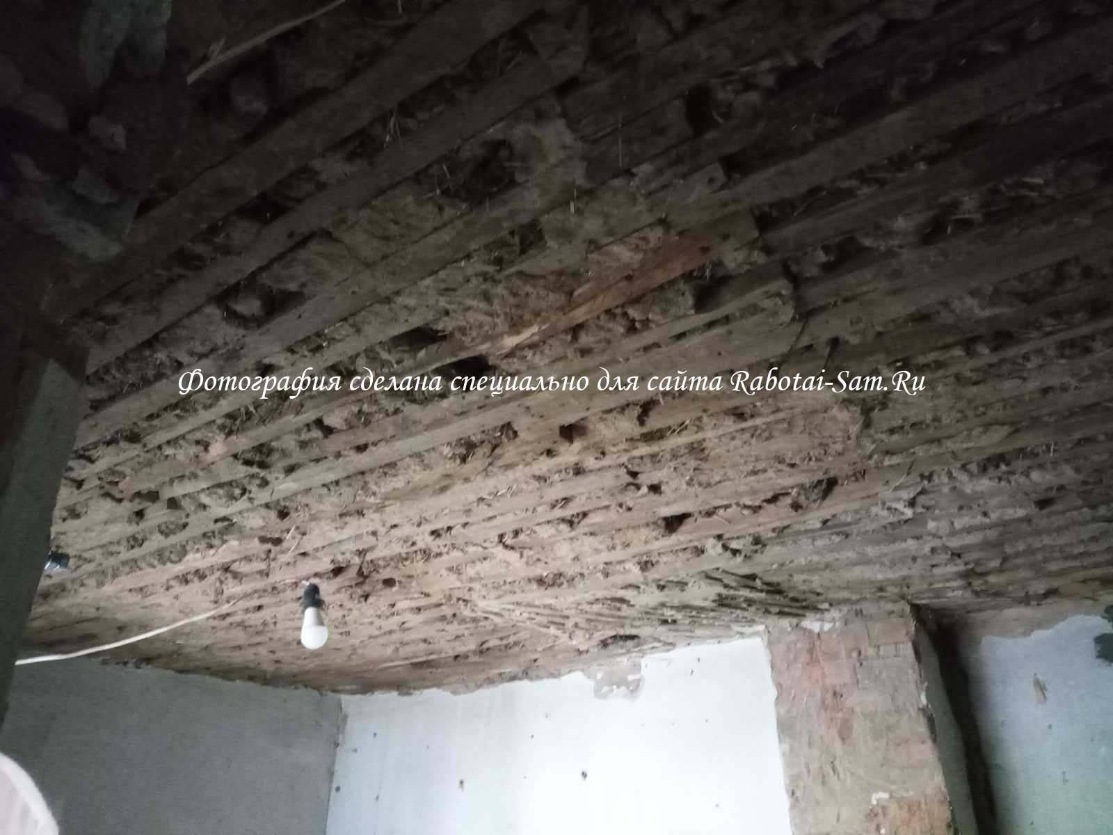 - Демонтируем декоративную отделку потолка и стен, снимаем старое напольное покрытие.