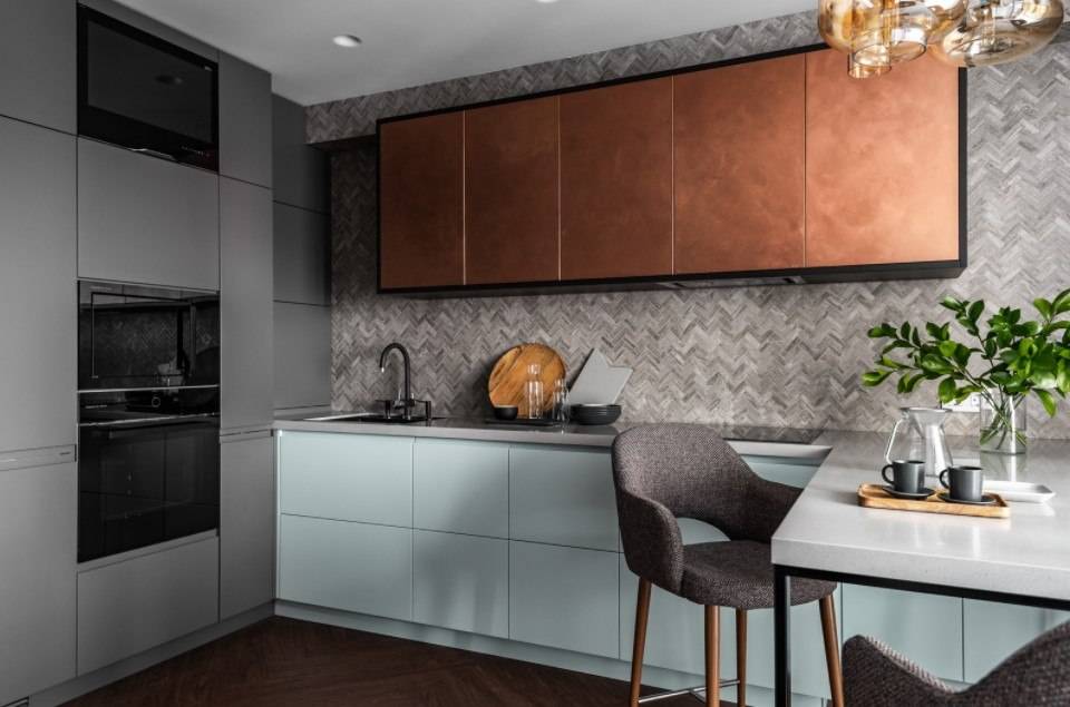 современный дизайн кухни является последовательным, все элементы должны сочетаться и дополнять друг друга;