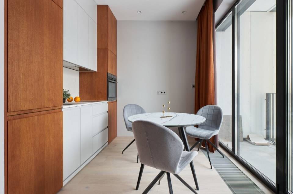 - дополнительная звукоизоляция — шум с кухни будет не таким громким, а значит, можно готовить или ходить к холодильнику в любое время суток.