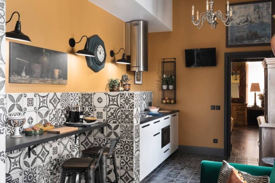 Если рабочая стена в вашей кухне до сих пор облицована невыразительной плиткой или выкрашена в тон остальным стенам, самое время превратить ее в изюминку интерьера. Для этого можно использовать контрастную мозаику или кафельную плитку, имитацию кирпичной кладки, дерева или натурального камня.