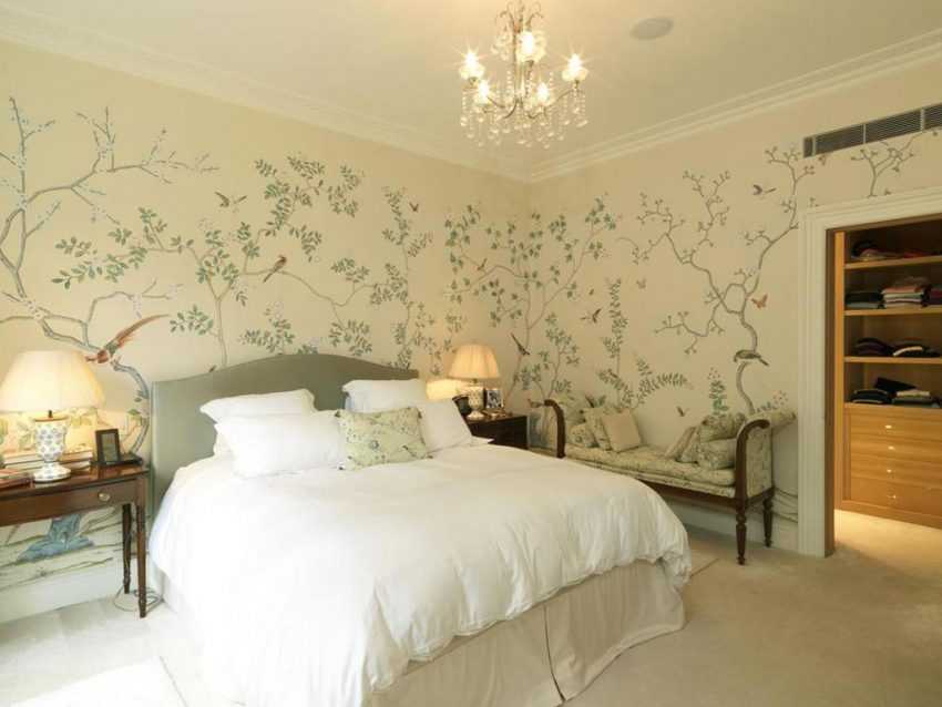 Стена, находящаяся у изголовья кровати, является очень важной частью проекта спальни 15 кв.м. Часто для отделки используют декоративную штукатурку