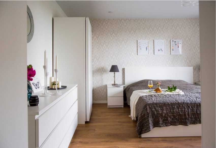 Не самая большая по площади спальня в 15 квадратных метров может быть визуально увеличена. Для этого на стенах комнаты должны быть полосы. Вертикальные делают комнату выше, а горизонтальные – шире.