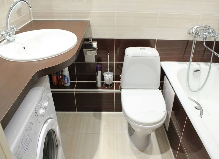 Даже на небольшой площади, при правильной ее планировке, можно вписать не только всю необходимую сантехнику, но и современные бытовые приборы, например, стиральную машинку.