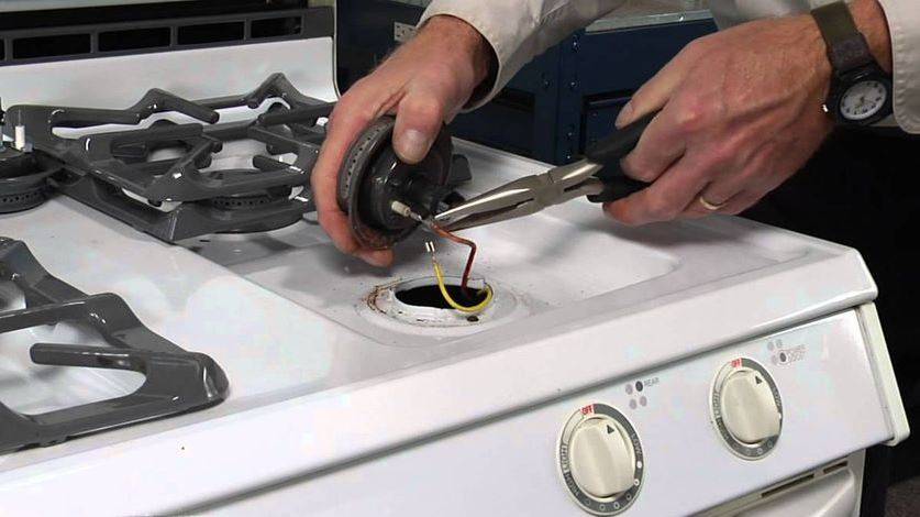 Иногда бывает, что и после чистки некоторые конфорки не работают. Это значит, что термопара вышла из строя. В этом случае ремонт варочной поверхности, работающей от газа, — замена термопары. Как до него добраться вы уже знаете, а отключается он просто: надо вынуть соответствующие провода из колодки. Вынимаем старый датчик, ставим новый. Устанавливаем на место крышку, проверяем работу. На этом, собственно, все.