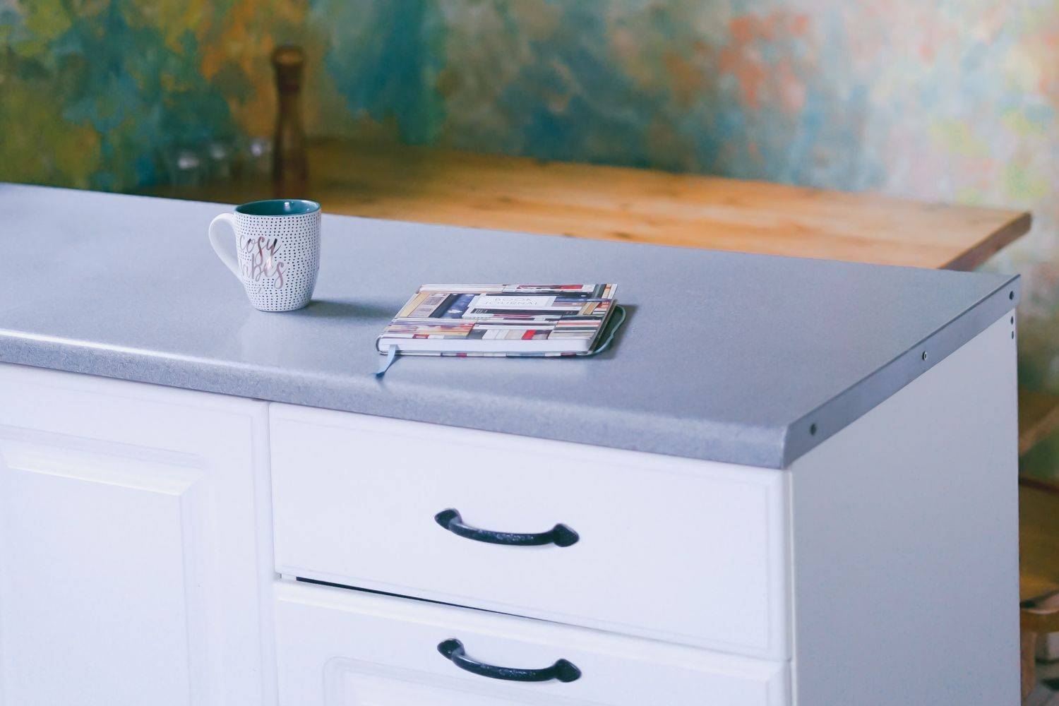 - Это обеспечит отличную сцепку и будет препятствовать размоканию бумаги и порче дизайна. Обычно такой переделки хватает примерно на 5 лет. На поверхность можно смело ставить горячее, и использовать для мытья влажную ткань.