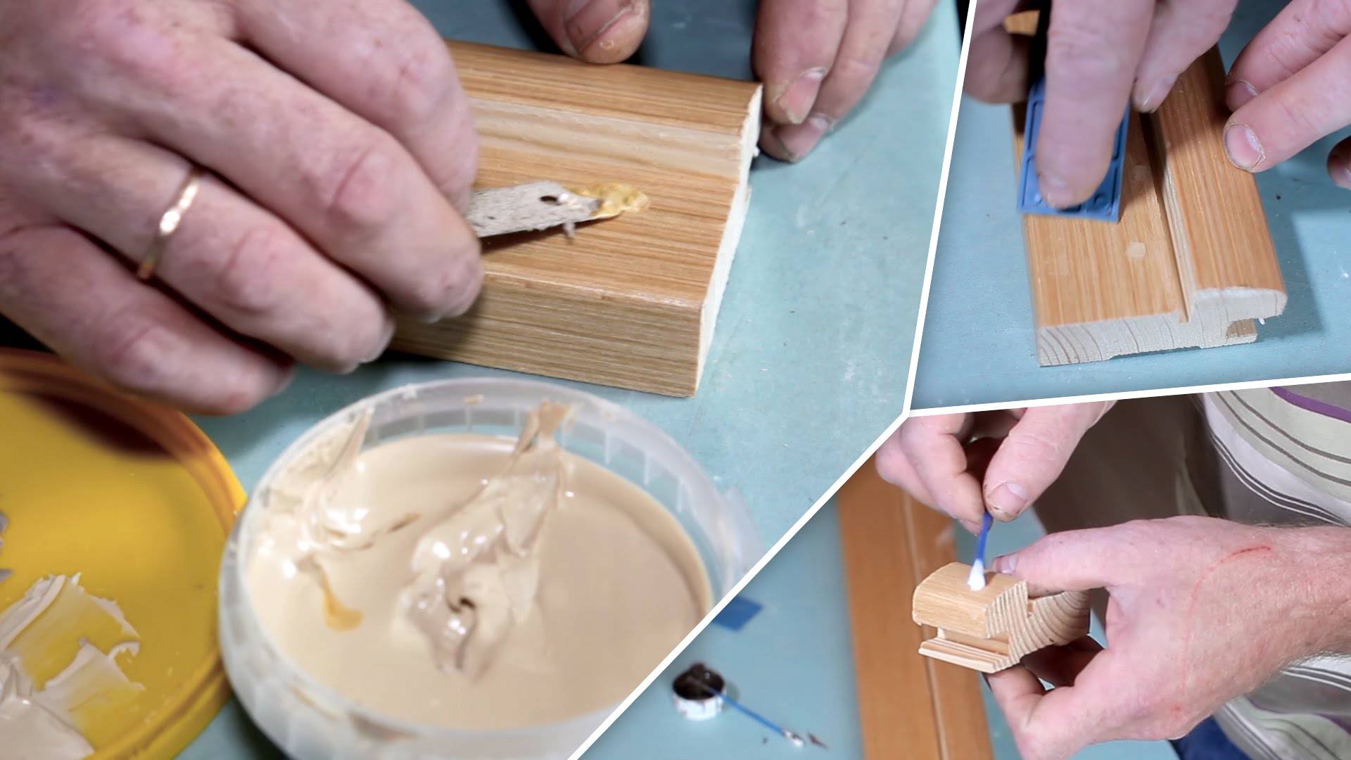 - Выравнивание поверхности. Оно не нужно, если вы планируете получить эффект винтажного предмета. В противном случае приобретается шпаклевка по дереву или мебельный воск.