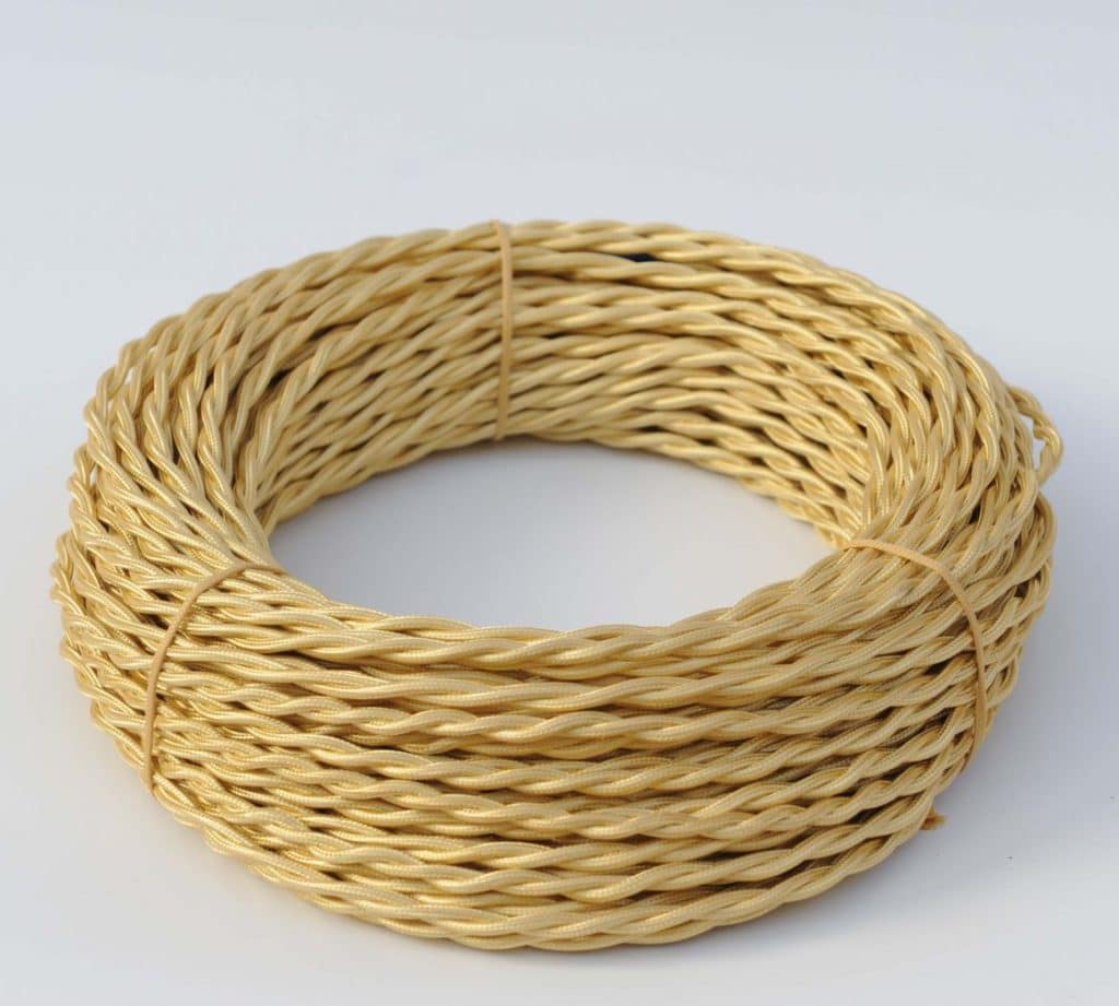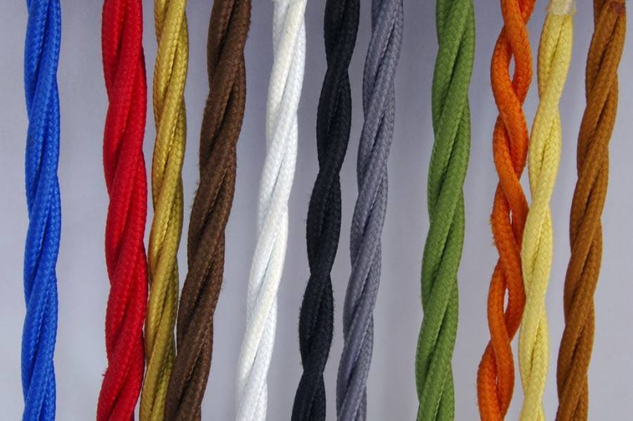 Что такое текстильный кабель (он же ретро кабель)? Это двужильный, либо трехжильный медный электрический провод, упакованный в изоляцию ПВХ, затем покрытый цветной текстильной оплеткой либо обвязкой из стекловолокна. Двужильные провода обычно берут для освещения. Трехжильные — для проводки (так как третья жила предназначена для заземления).