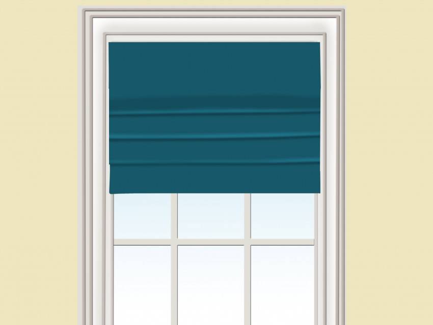 Римская штора шьется из прямоугольного отрезка ткани. В момент поднятия шторы образуются складки (драпировка). Она поднимается шнурками, продеваемыми через колечки по краям шторы.