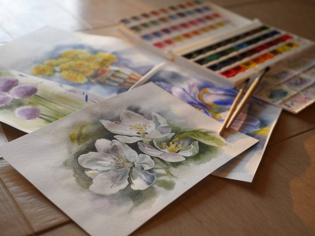 Начинайте с небольшого формата бумаги (А4 или слегка урезанный формат А3). Вообще для акварели всегда рекомендуют маленькие форматы.