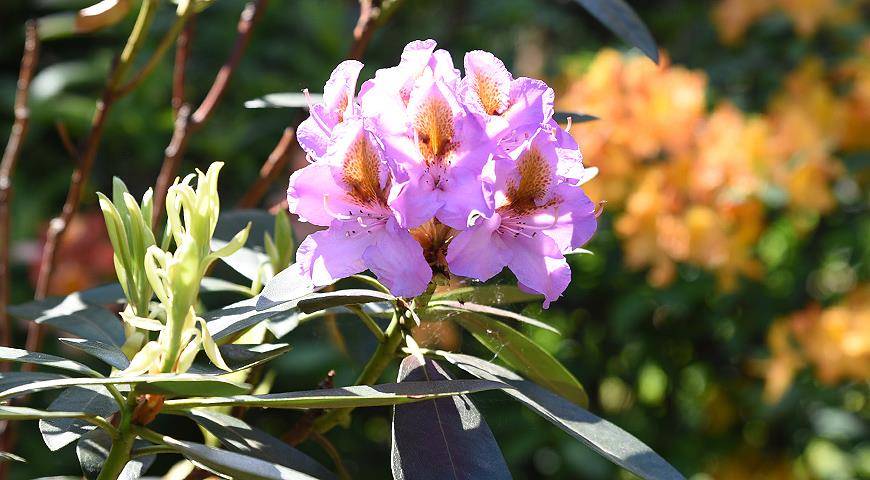 Рододендрон — красивый кустарник с вечнозелеными листьями