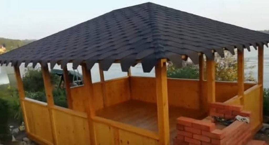- Конструкция должна находиться в относительной тени. Это убережет дерево от чрезмерного пересыхания на солнце, а кровельный материал – от сильного нагрева. Находиться в прогретой беседке летом будет некомфортно.