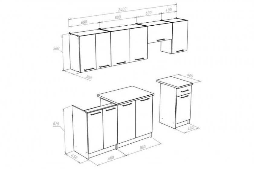 Стоимость верхних шкафов начинаются от 450 руб., на напольные тумбы – от 1000 руб.