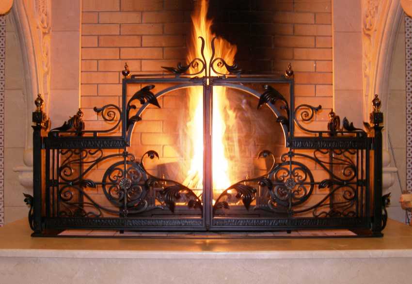 Используя одни завитки, изготавливают опоры для скамьи, а также в том же стиле создают решетку для камина.
