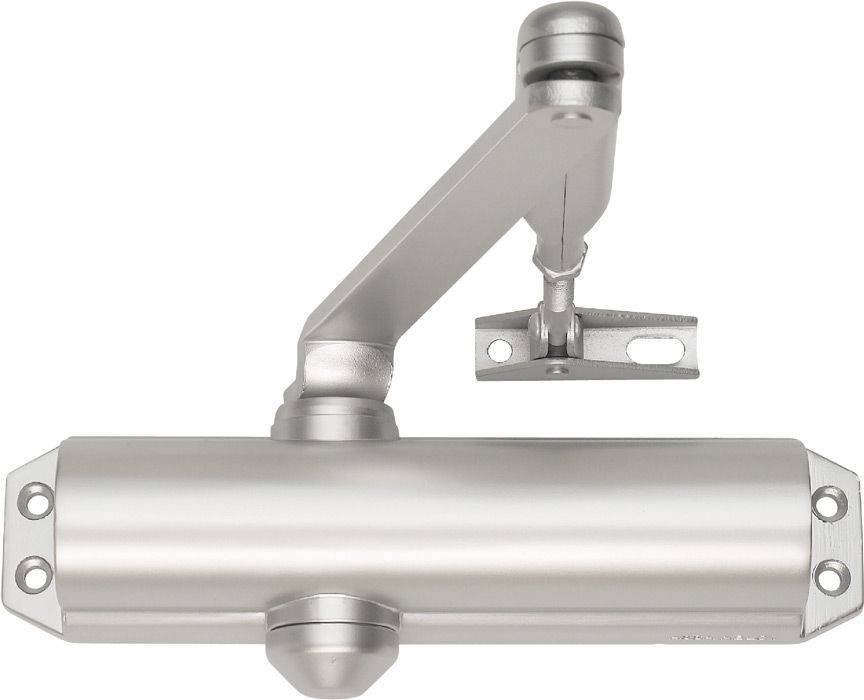 Выступающие детали отсутствуют. Это дает возможность устанавливать подобные доводчики на тех дверях, что приближены к стенам.