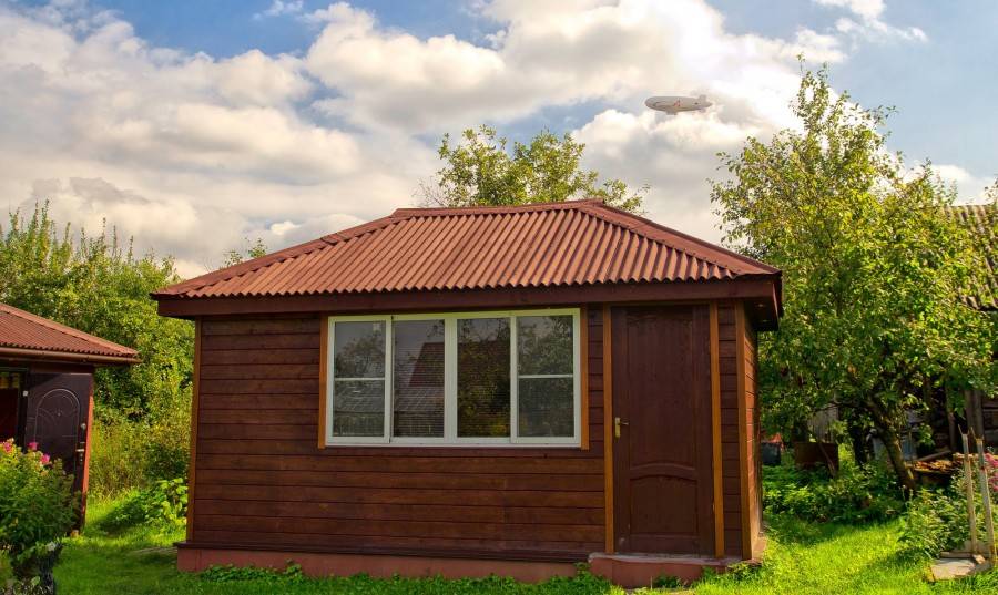 Каркасный сарай — это экономичное и быстровозводимое сооружение. Из минусов — невысокая пожаробезопасность, поскольку в конструкциях присутствует дерево.
