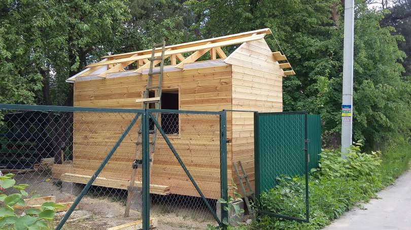 - постройка из брусьев и профнастила.