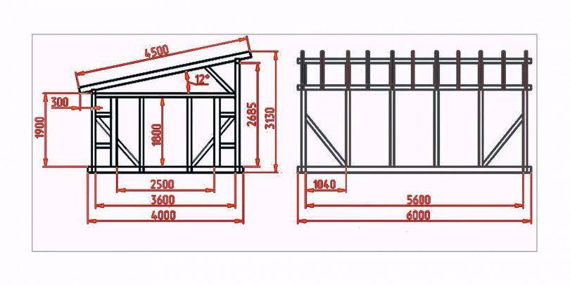 - Конструкция сарая, габаритами 3х6 м, с односкатной крышей приведена на чертеже;